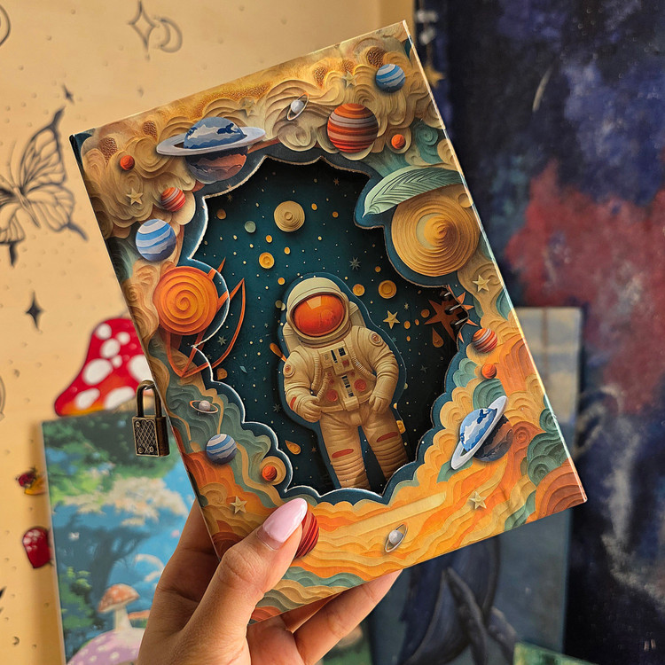 دفتر خاطرات قفل دار سه بعدی کهکشانی