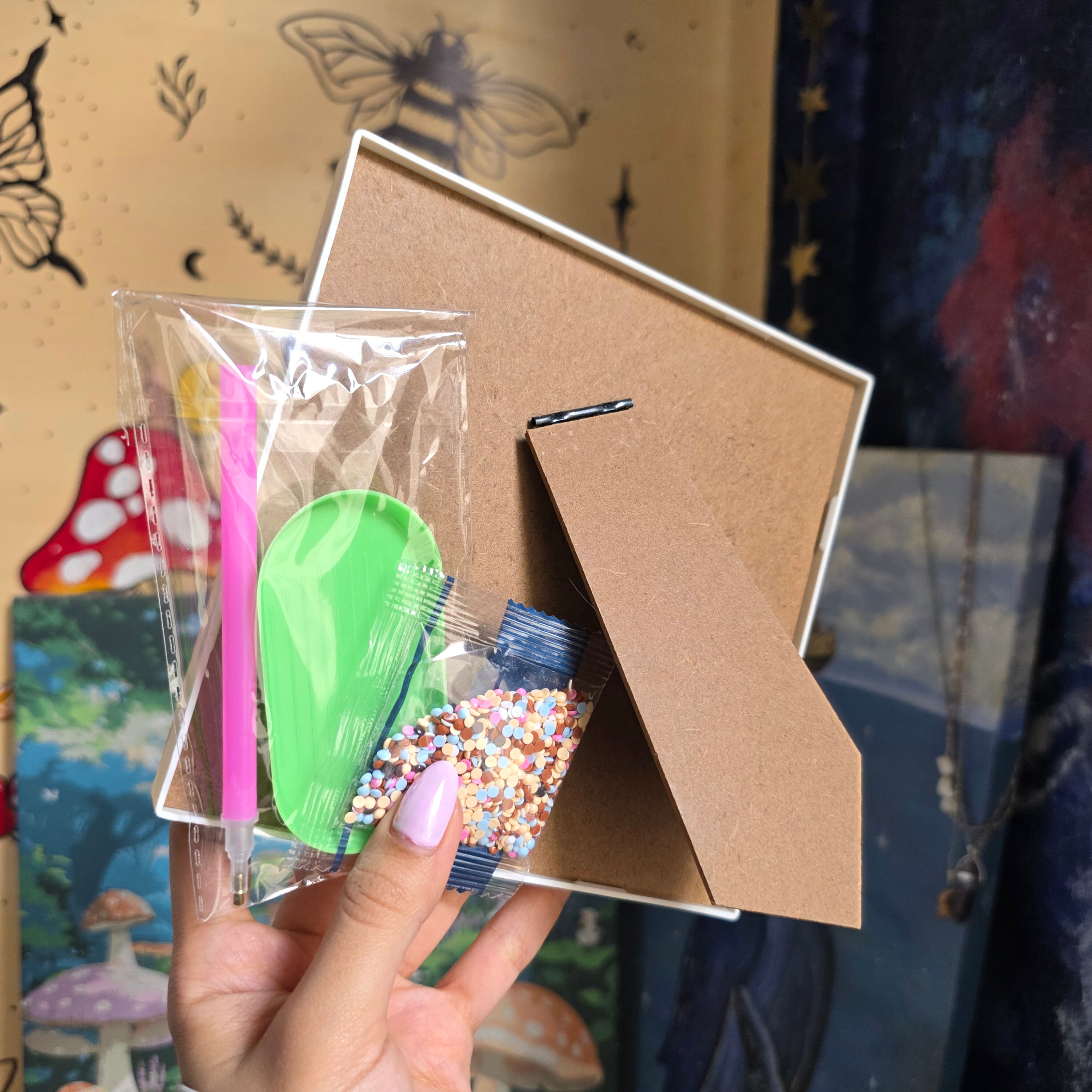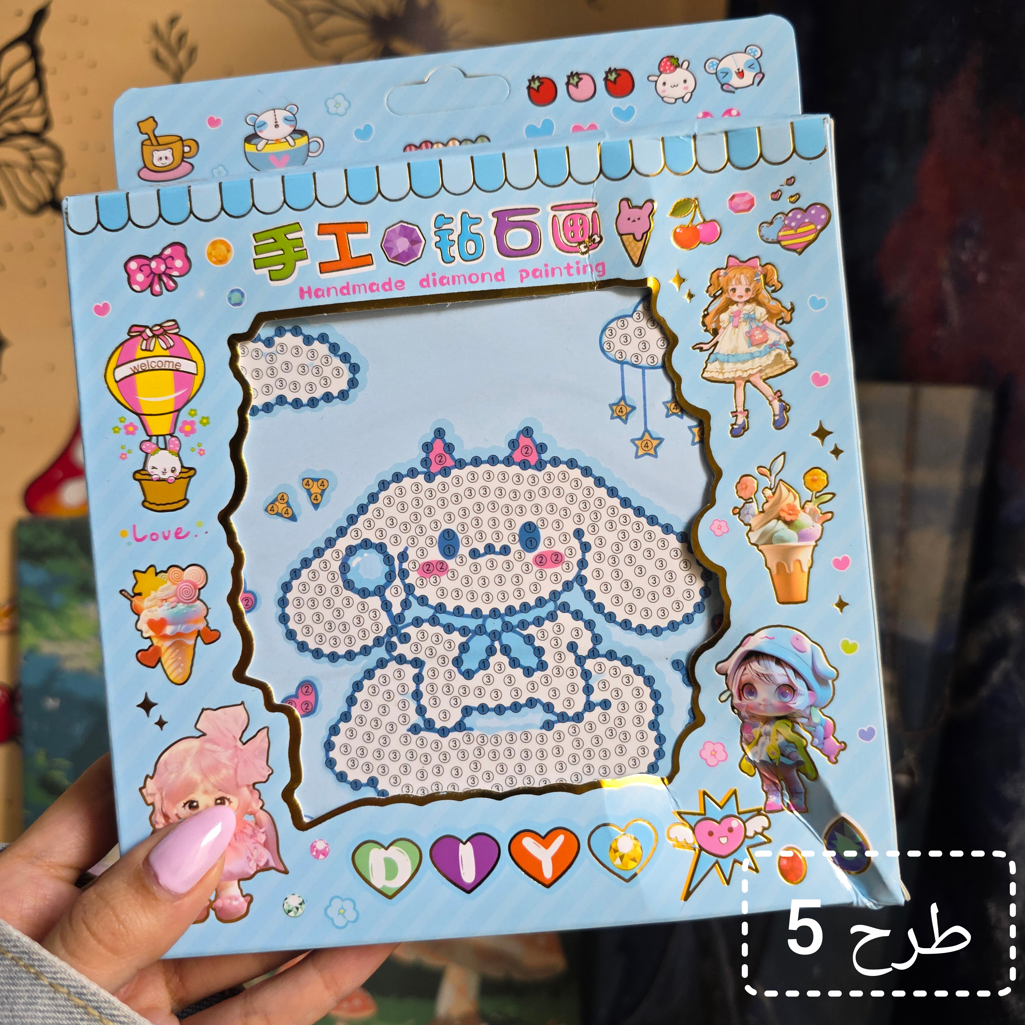 روی سطح طرح دارای چسب است ابتدا کیسه ی محافظ چسب را از روی طرح جدا کرده سپس الماس ها را داخل سینی ریخته و قلم را ابتدا به موم قرمز رنگ داخل پک فشار دهید سپس الماس مورد نظر را بردارید روی طرح قرار دهید.